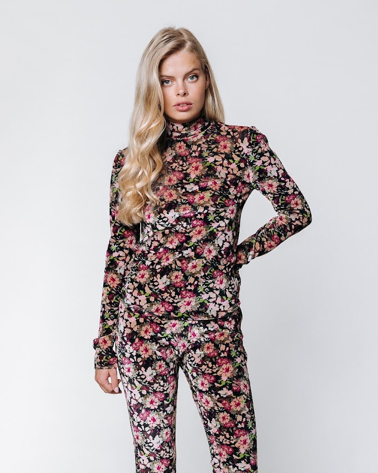 COLOURFUL REBEL NEYO FLOWER VELVET TURTLENECK TOP
