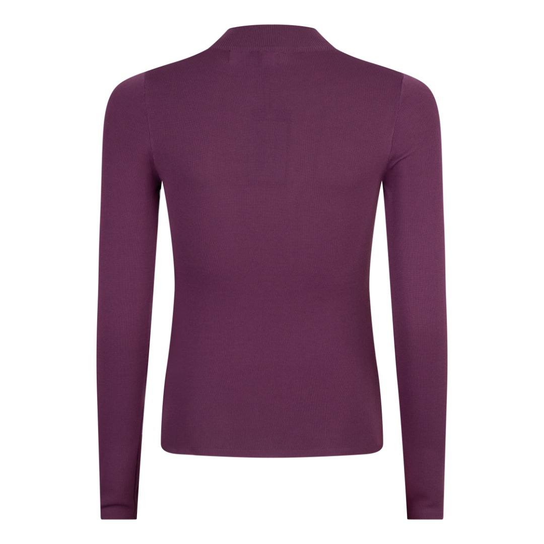 Deze basic paarse trui moet gewoon aanwezig zijn in je garderobe deze winter. De paarse top valt strak langs je lichaam, maar is gemaakt van een fijne stretch stof waardoor hij bij iedereen passend zal zitten. De top heeft lange mouwen en een strakke hals die net iets hoger dan gemiddeld om je nek valt. Het paarse is gemaakt van een subtiele stof met hele dunne verticale strepen die in de stof verwerkt zitten.