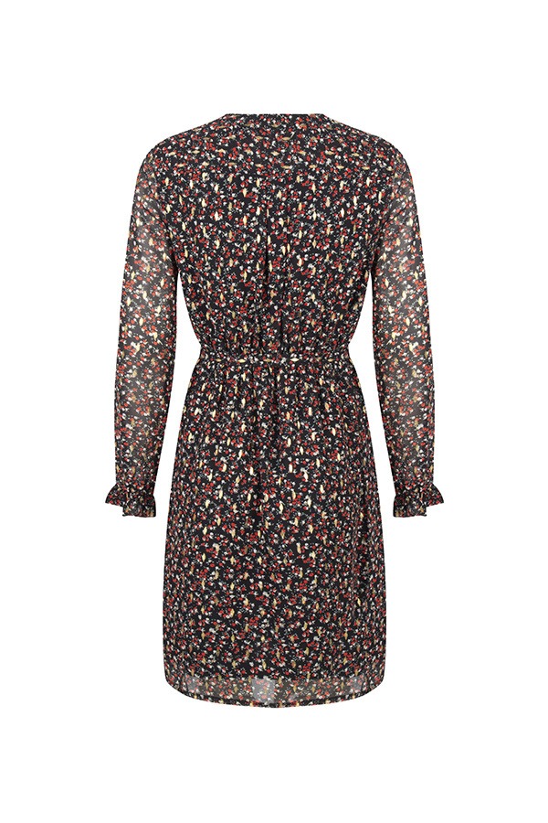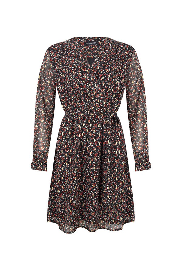 Deze zwarte jurk met leave print en gouden accenten is een key-item voor jouw party garderobe. Jurk Rosita is een mooie wrap in het boven stukje. De jurk valt tot net boven net boven de knie valt met een opvallend gouden patroon. Je kan met deze dress je vrouwelijke curves extra accentueren met een bijpassend ceintuurtje in dezelfde leave print. Super stylish voor de feestdagen!