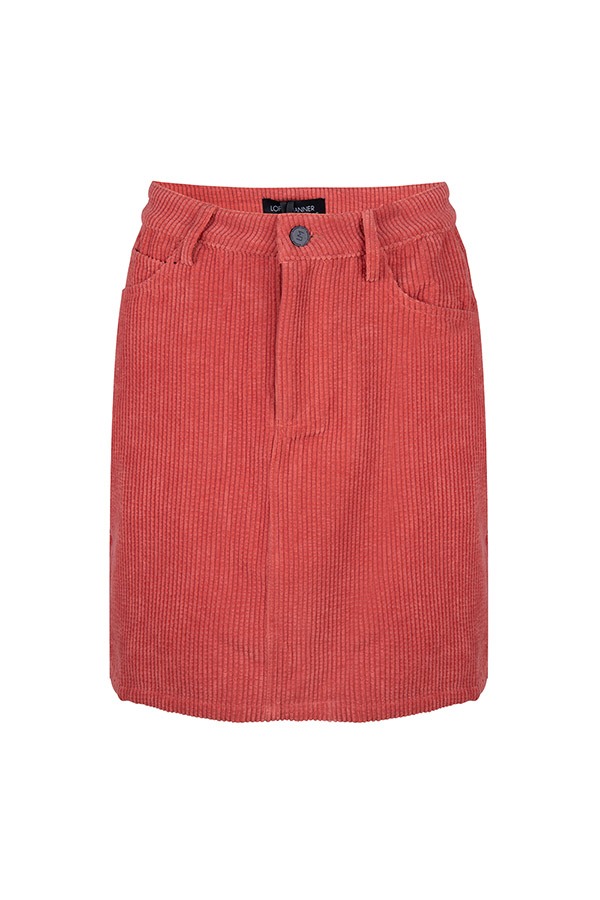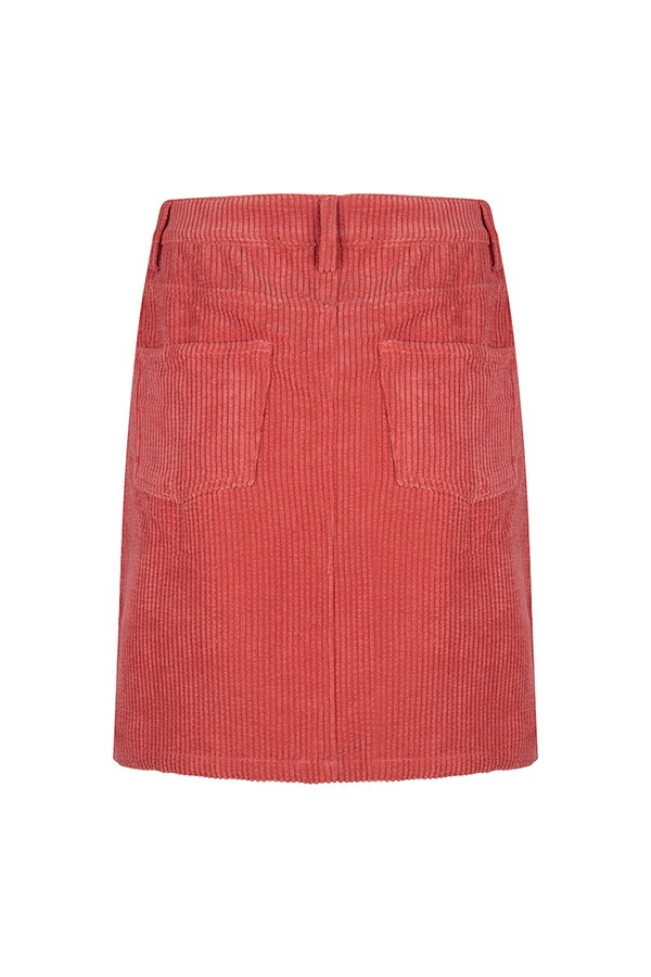 Skirt Lida is gemaakt van een ribstof. Ook zitten er 2 subtiele zakjes in dezelfde curderoy stof aan de achterkant van de rok. Ook zitten er aan de voorkant 2 zakken. De rok sluit met een zwart knoopje en een zilveren rits.
